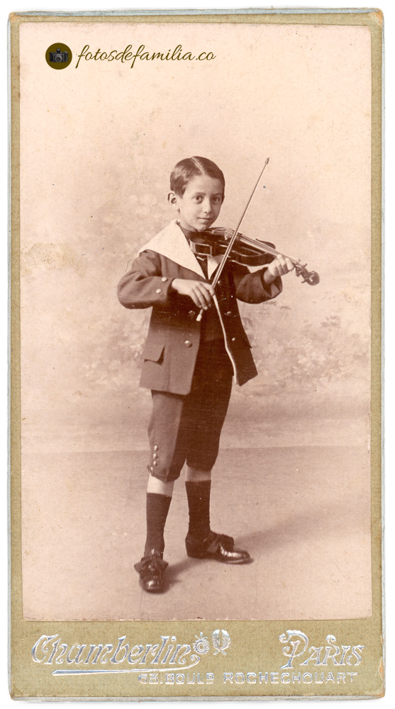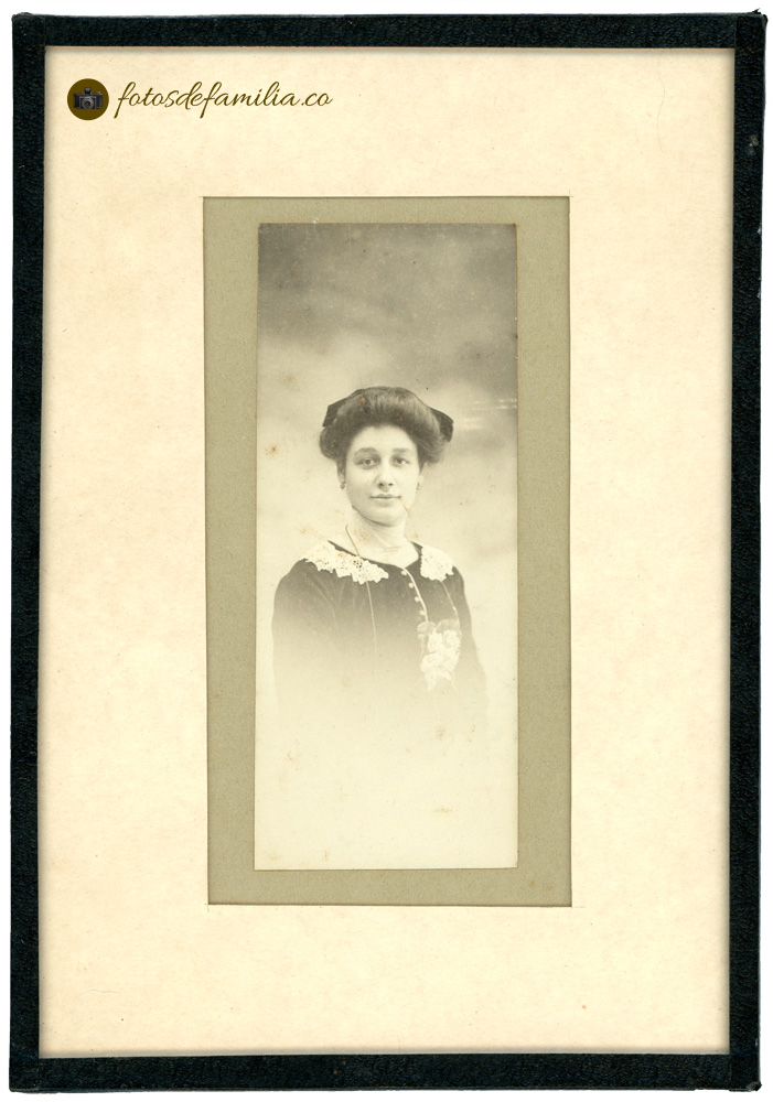 En el álbum de María Elena no hay muchos retratos en estudio, pero encontramos y añadimos a este fondo un sobre con algunos de los retratos más antiguos de la familia que corresponden a fotografías de ella, sus padres Tulia y Nicanor, y su hermano Enrique, algunos tomados en estudios fotográficos en Francia durante la primera década del siglo XX así como un par de tarjetas de visita de finales del siglo XIX.