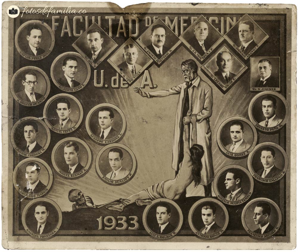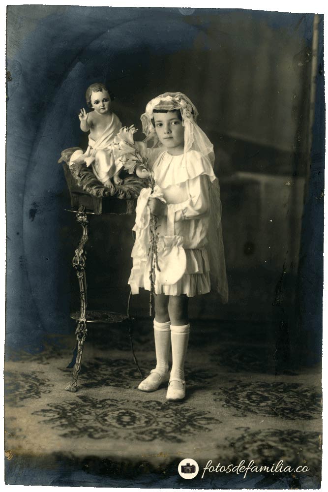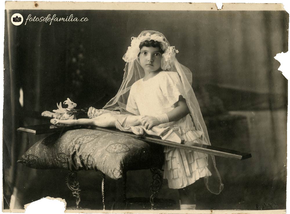 La primera parte de este álbum tiene cerca de cuarenta retratos en estudio de los diferentes personajes de la familia, en los que priman los eventos religiosos, primeras comuniones y matrimonios. Algunos de estos retratos son de fotógrafos anónimos, otros son de Foto Rodríguez, Foto Mejía y Toshtman.