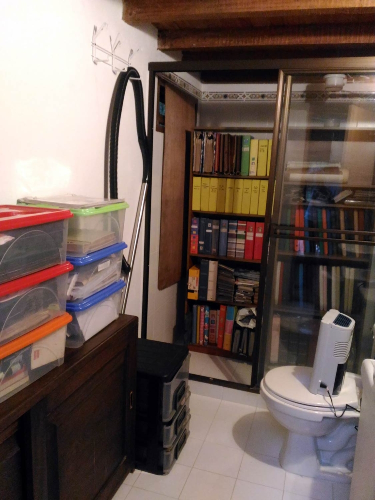 Se trata de once álbumes y varias cajas con fotos, negativos, diapositivas, contactos y películas de cine de 8mm que fueron tomados entre 1920 y 1970 aproximadamente, y que suman cerca de 3500 fotografías. Posteriormente me entregaron la colección de las fotos de mi familia nuclear, que va de 1971 hasta 2007, cuando llegó la fotografía digital. Para guardar estos casi diez mil soportes en papel fue necesario adecuar un espacio dentro de la casa que se mantuvo cerrado y oscuro con un deshumidificador encendido veinticuatro horas, al que llamamos el baño patrimonial.